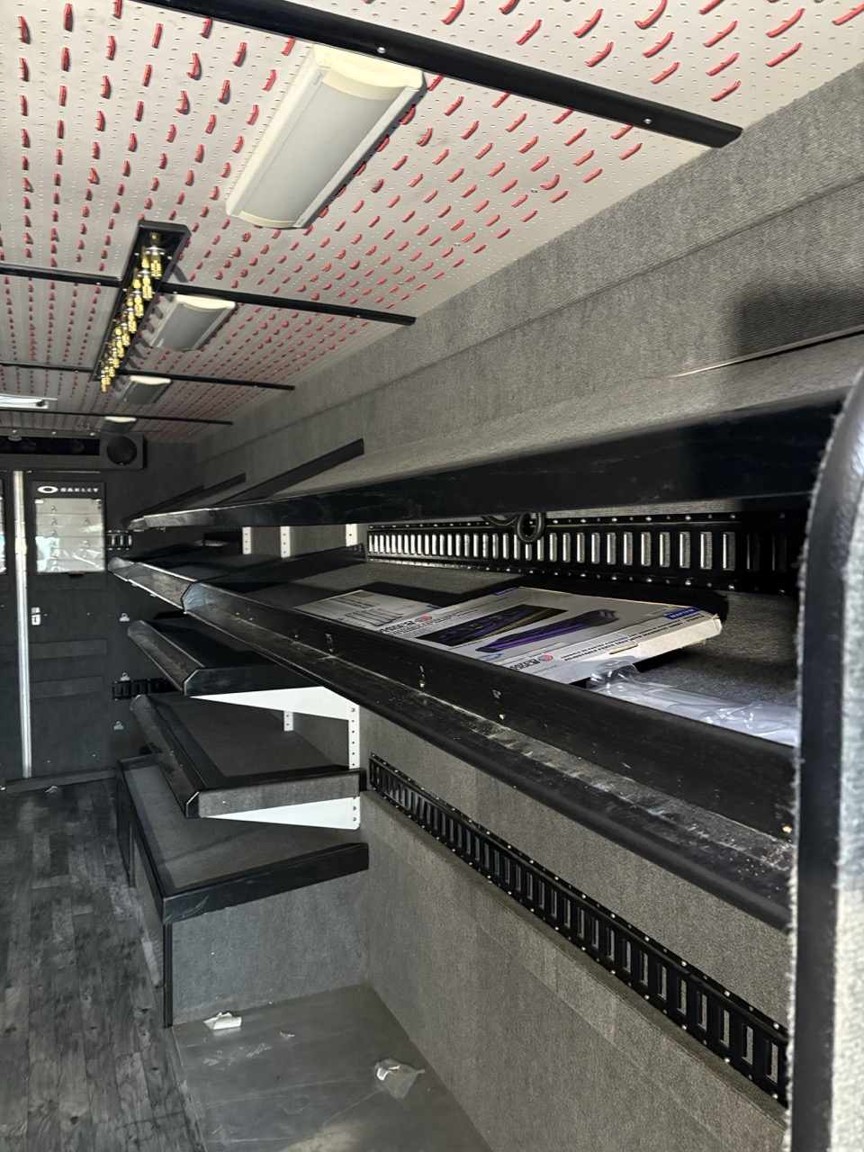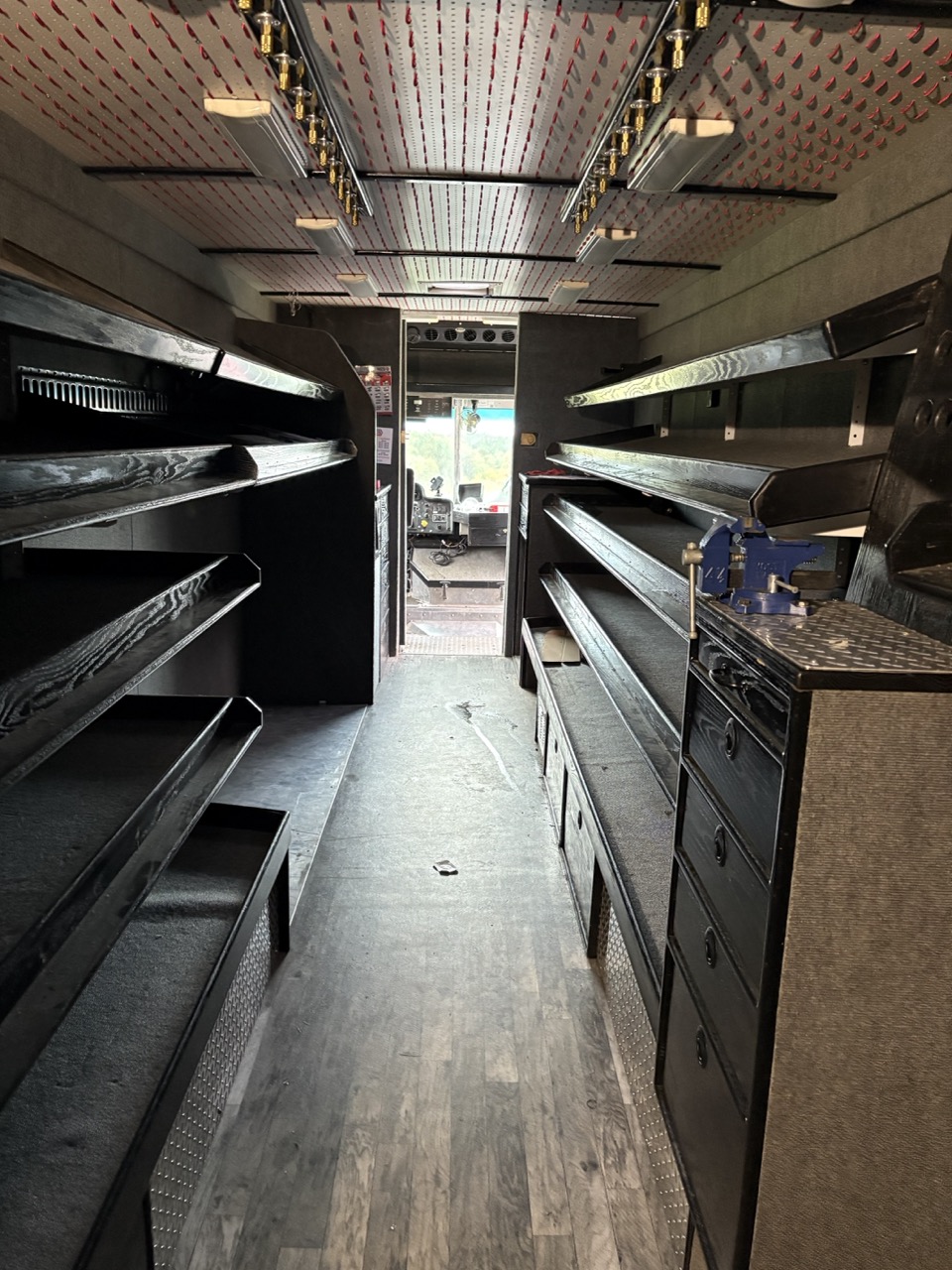 This 2018 Freightliner MT55 is a versatile and well-equipped 22-foot truck, ideal for a variety of mobile applications. It is outfitted as a tool truck, with the rear cargo area professionally fitted with extensive shelving and storage solutions for organizing tools and equipment. The truck has a GVWR of 25,500 lbs and 82,635 miles on the odometer. It is powered by a reliable Cummins 6.7 engine paired with an Allison automatic transmission, ensuring smooth and consistent performance. The body, built by ACDV, includes a robust 2,000 lb liftgate for easy loading and unloading. For operator comfort and functionality, the interior is fitted with a gas generator and two rooftop AC units for climate control, while a diesel furnace provides heat in colder conditions, making it a comfortable and capable vehicle for extended use.