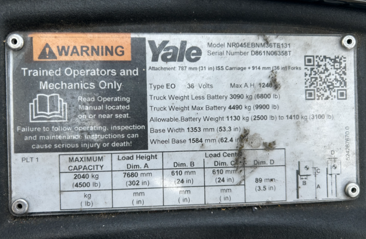 This offering presents a fleet of five matching 2019 Yale NR045 electric narrow-aisle reach trucks—including serial numbers D861N06341T (2,589 hrs), D861N06345T (2,607 hrs), D861N06346T (2,511 hrs), D861N06355T (2,998 hrs), and D861N06358T (2,500 hrs)—providing a rare opportunity to standardize your warehouse operations with consistent, high-performance equipment. Each unit is engineered for high-density racking environments with a robust 4,500 lb lift capacity and a reliable 36-volt power system. These reach trucks are equipped with specialized duplex masts offering an impressive 302" maximum lift height and a 131" lowered height for easy transitions through standard clearances, while integrated sideshift and smooth-rolling cushion wheels ensure precise pallet handling and indoor maneuverability. With exceptionally low original hours across the entire group and uniform specifications, this Houston, TX-based fleet represents a premium, turn-key solution for any facility looking to immediately upgrade its vertical storage capabilities with Yale's industry-leading narrow-aisle technology.