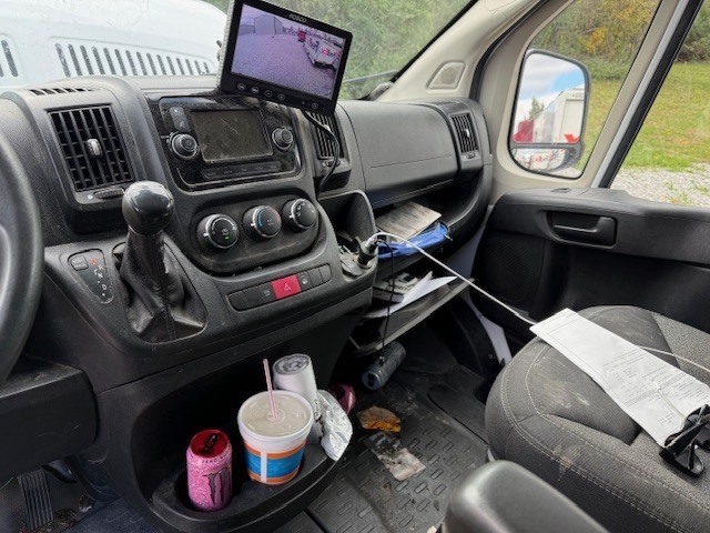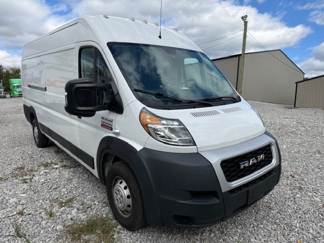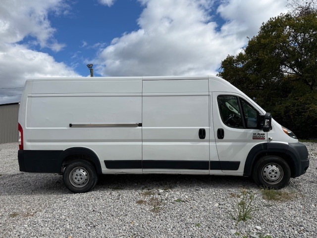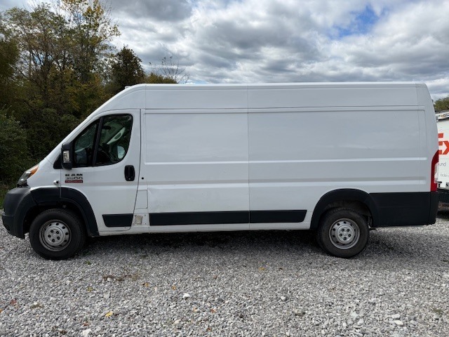 This 2021 Dodge ProMaster (VIN: 3C6MRVJG1ME528957) is equipped with a robust Ram 3.6L Pentastar V6 engine generating 280 horsepower and paired with the reliable Ram Auto 62TE 6-speed automatic transmission featuring overdrive, delivering responsive performance over its 89,870 miles. Key features include like-new A/C, power windows and door locks, cruise control, power steering, and an AM/FM radio, all riding on 225/75 R16 tires and steel wheels with a spring suspension. Despite minor cosmetic flaws—a cracked passenger side mirror with a missing light cover, a bent driver-side fender, a cracked bumper, and broken interior rear door paneling, along with a license plate light that is out—the low mileage indicates this van is fully ready to be put to immediate good use for cargo, delivery, or conversion.