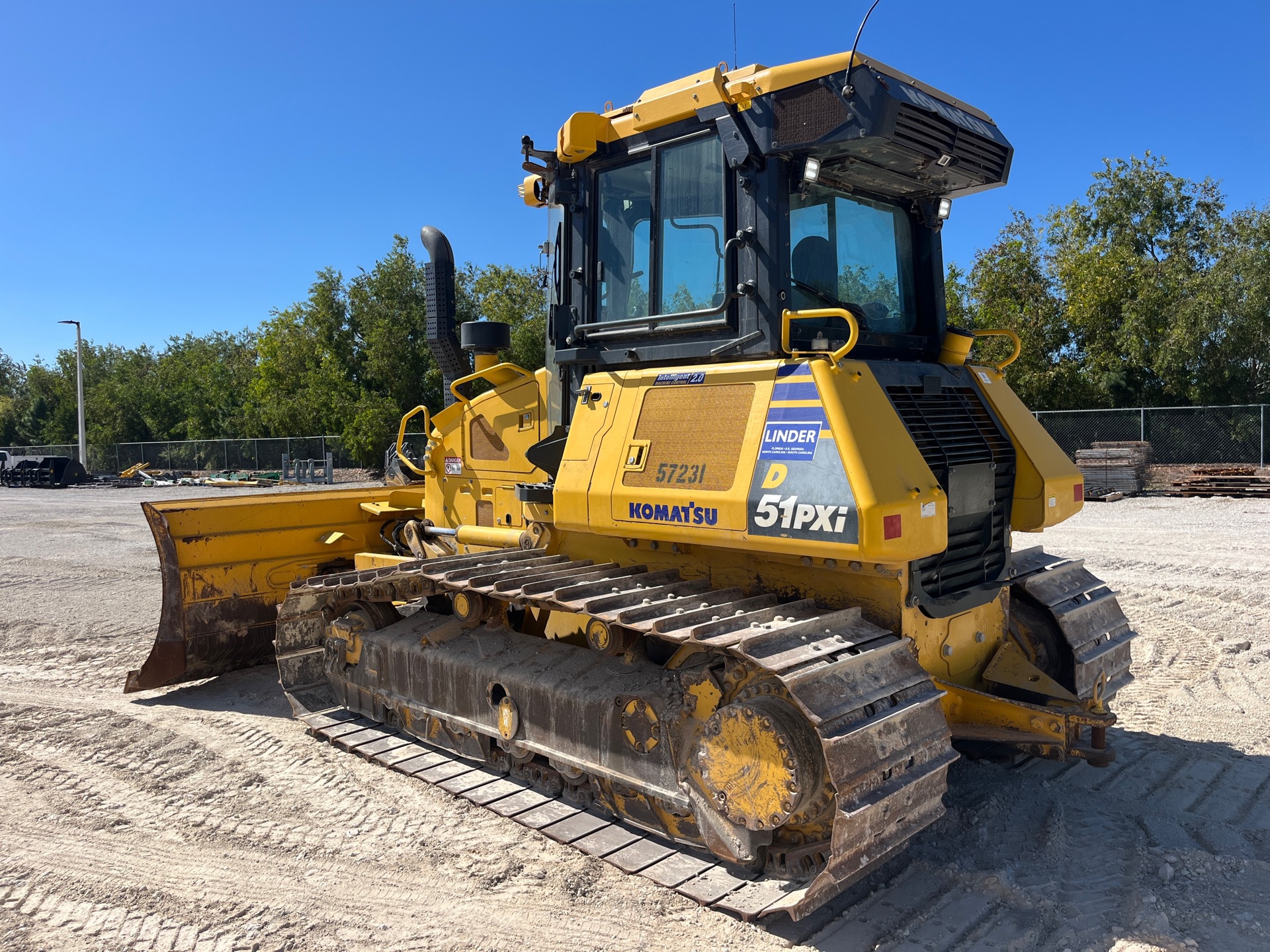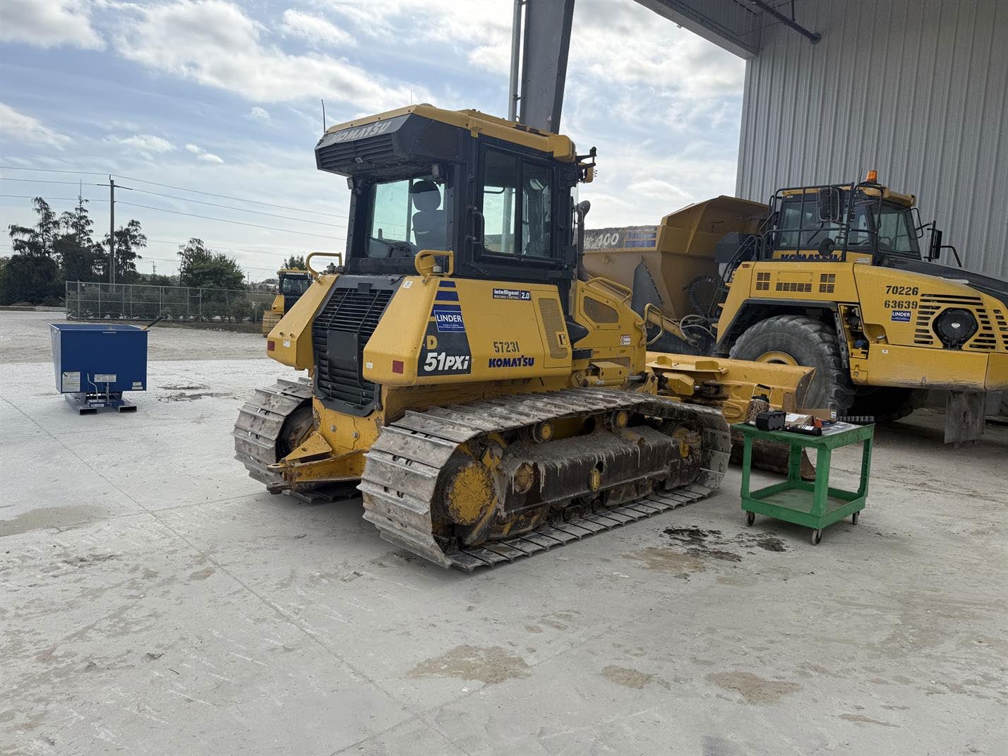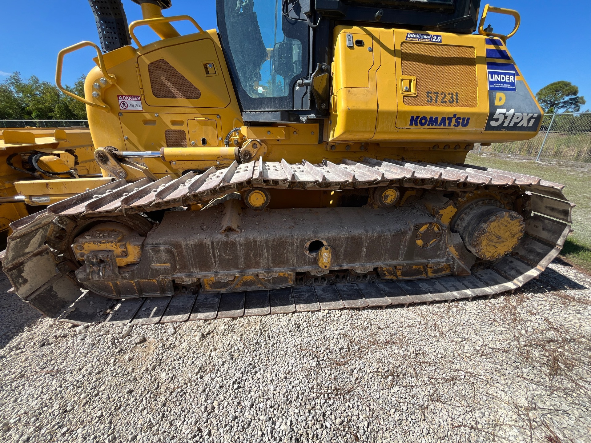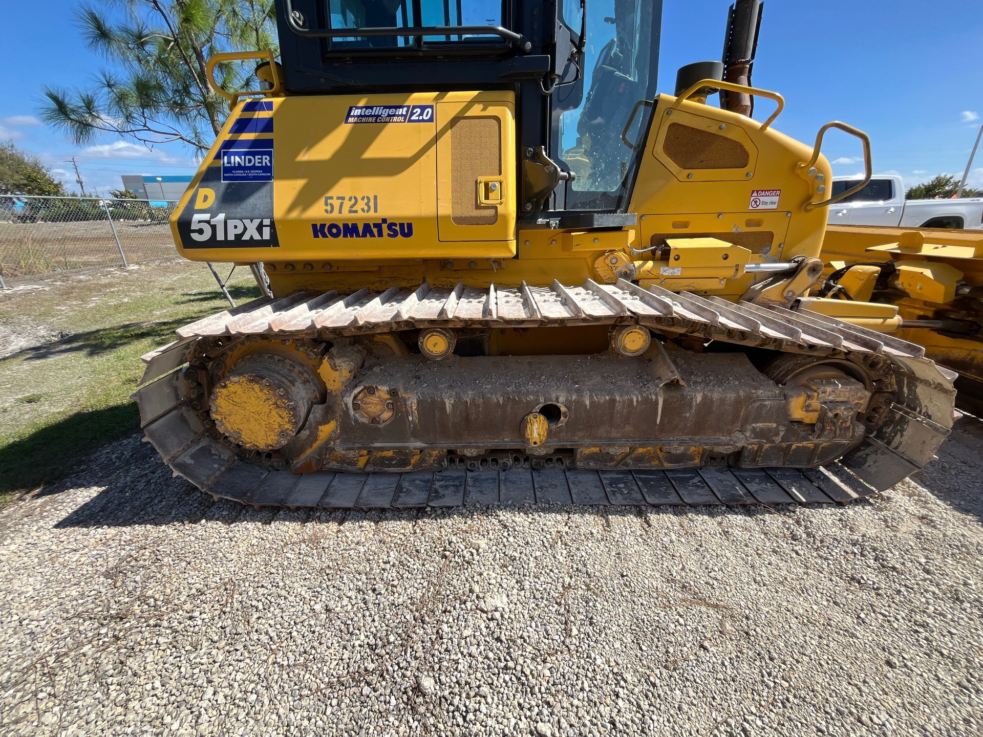 This 2022 Komatsu D51PXI-24 crawler dozer (SN: B25129) is a specialized 31,438-lb grading machine featuring a unique "super-slant" nose for unmatched blade visibility, currently showing 5,990 hours and maintained in normal working condition with a good physical appearance. As an "i-model," it features Komatsu’s factory-integrated Intelligent Machine Control (iMC), utilizing a 3D GNSS system and stroke-sensing hydraulic cylinders to automate the blade from rough cut to finish grade without external masts or cables. Powered by a 131-horsepower engine and a dual-path hydrostatic transmission, this "PX" variant is equipped with 28-inch tracks for low ground pressure, making it ideal for soft-terrain applications like golf course construction and residential site development. While its higher hour count reflects steady use, the machine’s "good" physical condition indicates it has been well-cared for, ensuring the integrated grading logic and 133-inch Power Angle Tilt (PAT) blade remain effective for high-precision, high-efficiency infrastructure tasks