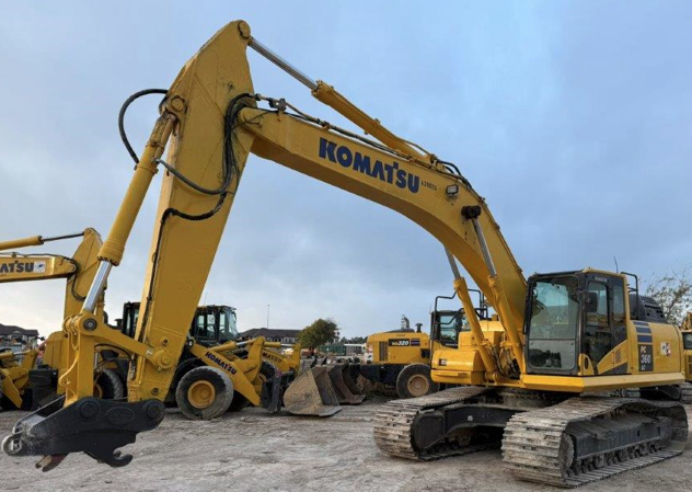 This 2022 Komatsu PC360LC-11 hydraulic excavator (SN: A39026) is a 78,645-lb heavy-duty machine engineered for high productivity in construction and material handling, currently showing 5,201 hours and maintained in normal working condition with a mostly good physical appearance. Powered by a 257-horsepower Komatsu SAA6D114E-6 engine and the HydrauMind closed-center load-sensing hydraulic system, this unit offers a maximum digging depth of approximately 26 feet and 10 inches with smooth, multi-functional control. The "LC" long-undercarriage configuration ensures a stable footprint during heavy lift cycles and deep trenching, while the included Strickland coupler significantly enhances versatility by allowing for rapid, secure attachment changes from the safety of the cab. Despite the standard operational wear expected from 5,000+ hours of service, the machine’s mechanical systems remain responsive, and its "mostly good" physical condition indicates a well-maintained exterior and structure, making it a reliable and efficient asset for large-scale earthmoving or utility projects.